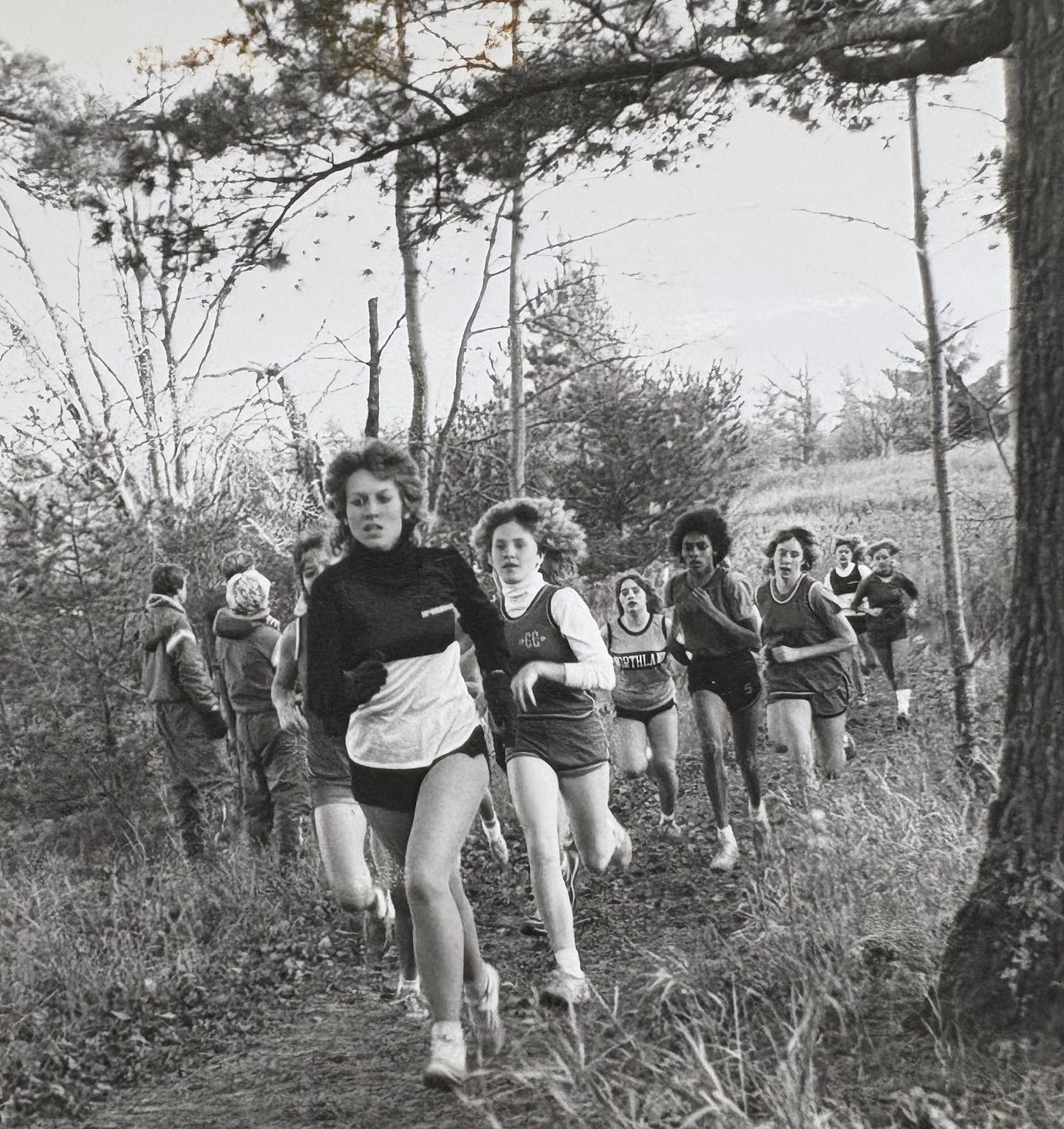 On the weekends and during the summers I ran through the woods on the gravel road that passed in front of my house, regularly crossing paths with black bears or deer or porcupines. During the track or cross country seasons, I trained with my teammates on the roads around our school in the town of McGregor (the school was too strapped to have a track). The year I joined the cross country team was the first year my school had enough girls on it to have an official team (we needed five) and to my—and I think everyone’s—great surprise, at this longer distance and with so little competition, I was the fastest runner.
